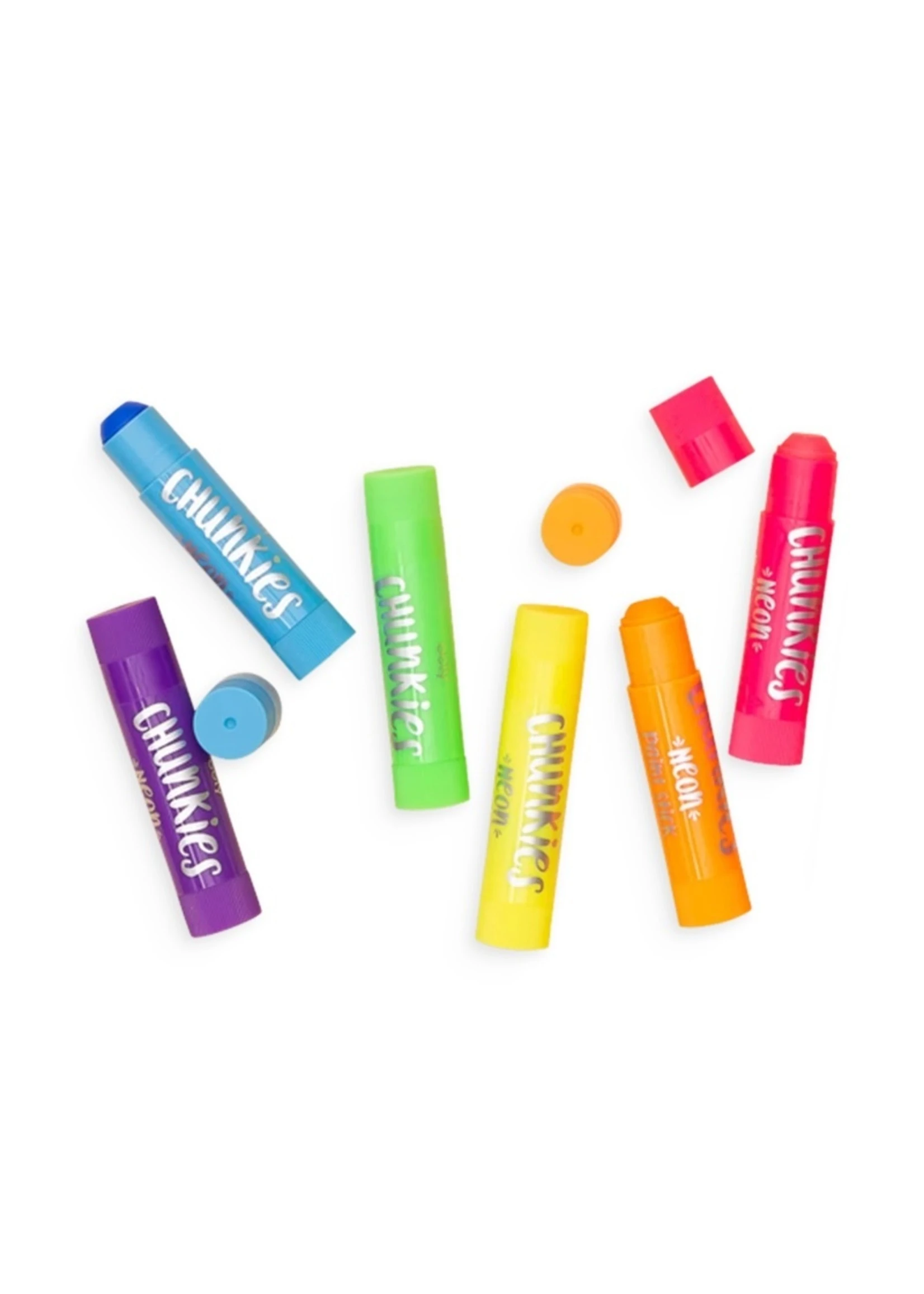A neon set of Chunkies Paint Sticks in a travel-friendly pack of 6! These bright neon paint sticks are easy to hold and come in 6 outstanding neon quick drying colors. You twist up the barrels for long-lasting, mess-free fun that kids and adults alike will love.