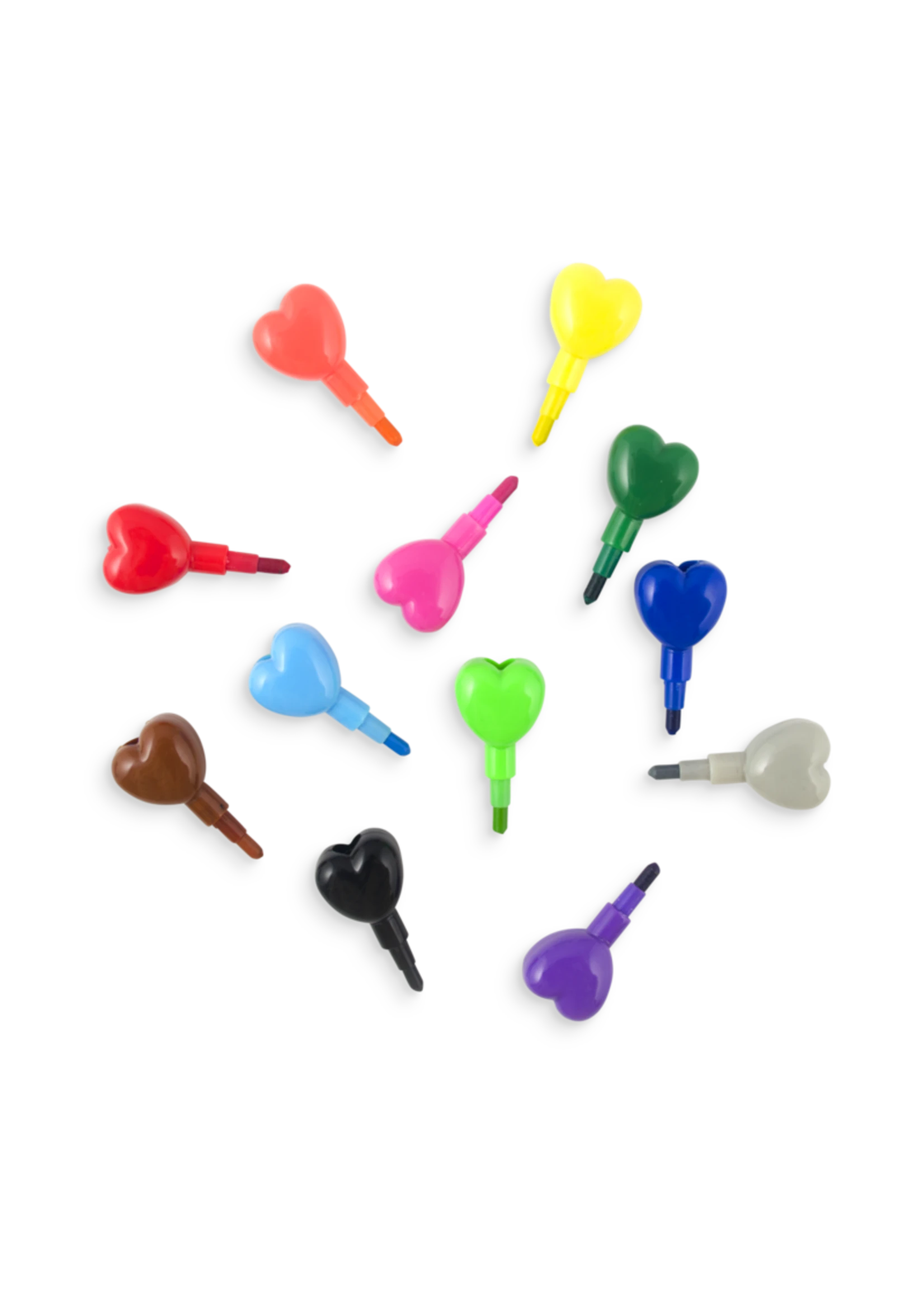 Heart to Heart Stacking Crayons is the amazing stackable crayon set all in one crayon. Each heart has a single colored crayon and is totally interchangeable from the rest. Mix and match the 12 color hearts so you can make your own unique Heart to Heart crayon. And each crayon comes with a fine point so you can make all sorts of detailed coloring projects. And for extra fun, you can mix and match crayons with your friends to make all sorts of fun Heart to Heart stacking creations.