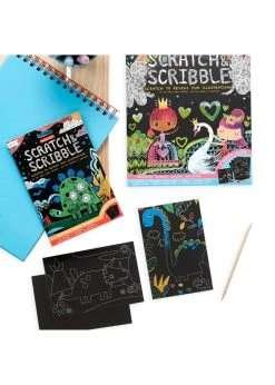 Delightful dinosaurs in rainbow hues are hidden until you scratch and scribble to reveal them. Mini but mighty, this kids scratch art kit has everything included for dinosaur fun. This dinosaur themed scratch art kit is perfect for travel sized fun for on-the-go, or at home creativity.