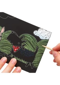 - Travel sized scratch art kit with dogs