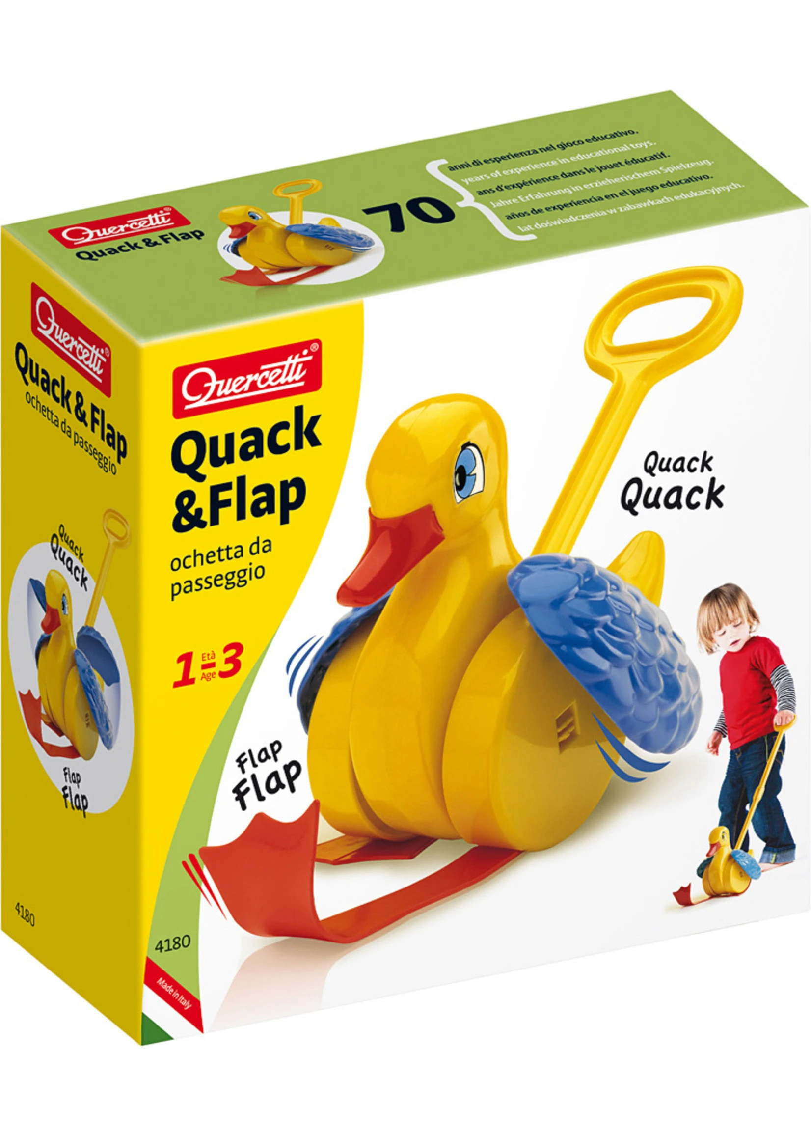 Step out for a waddle! See your little one in motion, engaging with this sweet push-toy, with big feet and wings flapping. You’ll hear, “Quack, quack, quack” all the way! Inspire the love of nature and aquatic birds with this little ducky.
