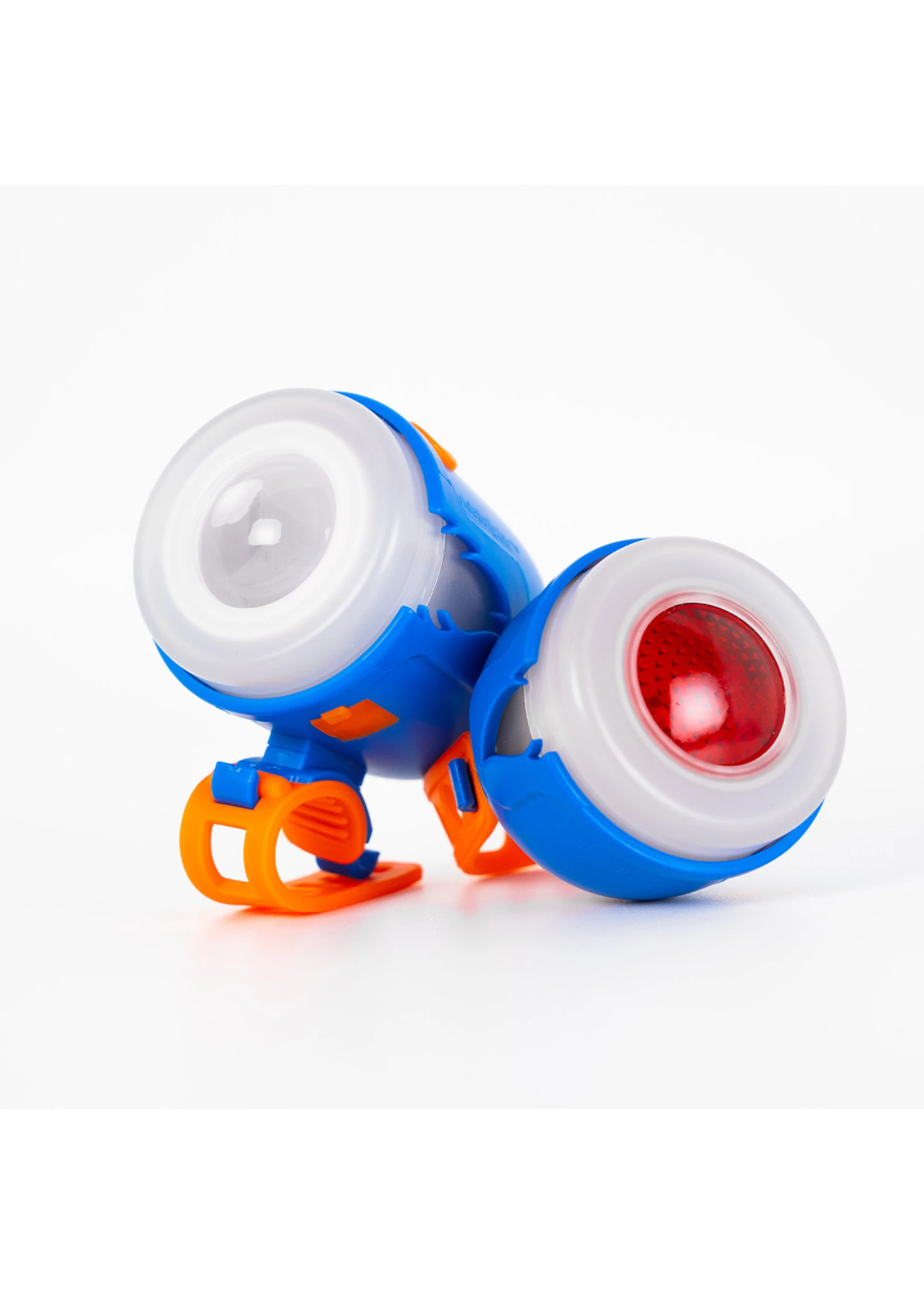 - Includes 1 colorful weather-resistant LED headlight, 1 red weather-resistant LED taillight, and mounting straps
