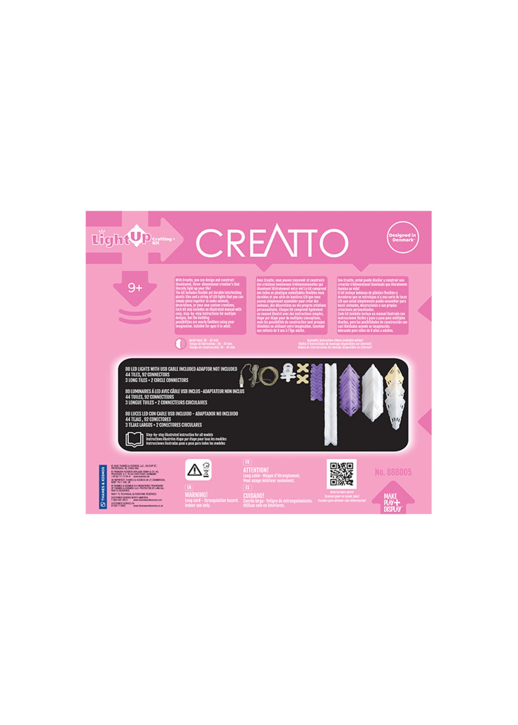 With CREATTO, you can design and construct illuminated, three-dimensional creations that literally light up your life! The kit includes flexible yet durable interlocking plastic tiles and a string of LED lights that you can piece together to make animals, decorations, or your own custom creations. Each set includes an illustrated manual with easy, step-by-step instructions for multiple designs, but the building possibilities are nearly limitless using your imagination. Suitable for ages 9 to adult.