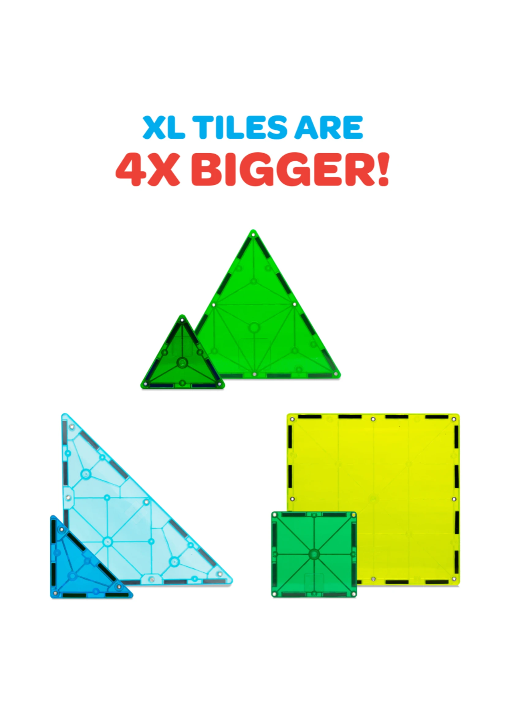 - Includes 16 extra-large tiles ā 4x larger than traditional magnetic tiles