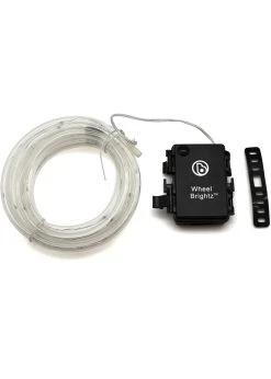 It’s glow time! 20 micro LED lights create a ring of brilliant color that will grab attention wherever you go. Easy riders will freak over the cool hues while grownups will see bike safety in a whole new light. 7′ of tubing can be cut to size and works with most wheels 20″ or larger, and is intended for one wheel. Requires 3 AA batteries, not included.