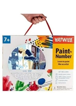The rules are simple: fill in the numbered areas with the appropriate colors. Select zone you’re planning to paint and start painting from the largest to the smallest areas. Draw anywhere! You don’t need an easel or other extras to do this. Numbers and outlines are printed clearly, so you don’t have to look at the picture under a magnifying glass. Acrylic paints are odorless and dry quickly. If you went beyond the outline – it’s not a problem! Just apply the appropriate color on top. The game is designed for children older than 7 years.